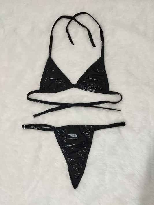 Kamuk Life Faux Black Wet Leather Lingerie Set
