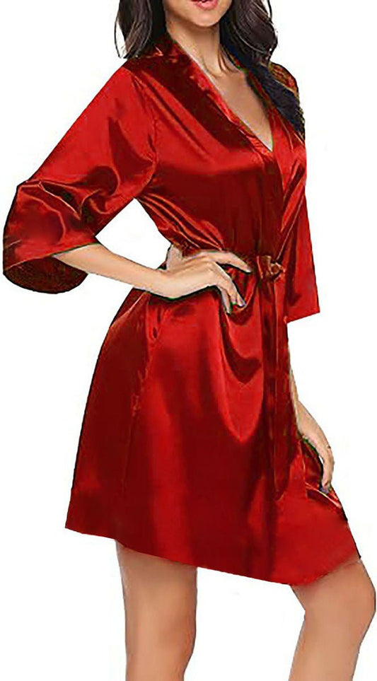 Kamuk Life Long Sleeved Silk Red Satin Robe